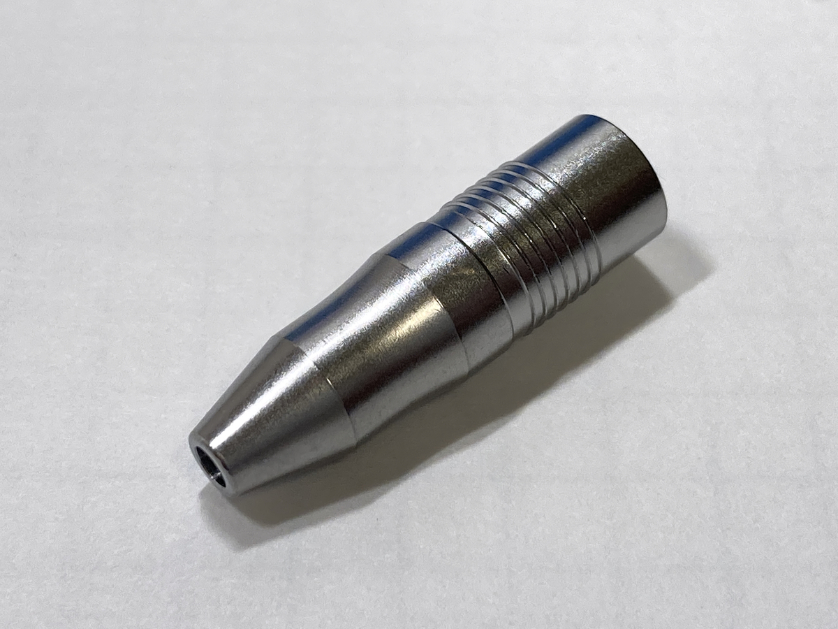 口金はこんな形状をしています。少しペン先がえぐれたような形状になっています。この形状のおかげで筆記面の視野が広がりすっきりとした印象を受けます。口金の重量は2.6グラムです。